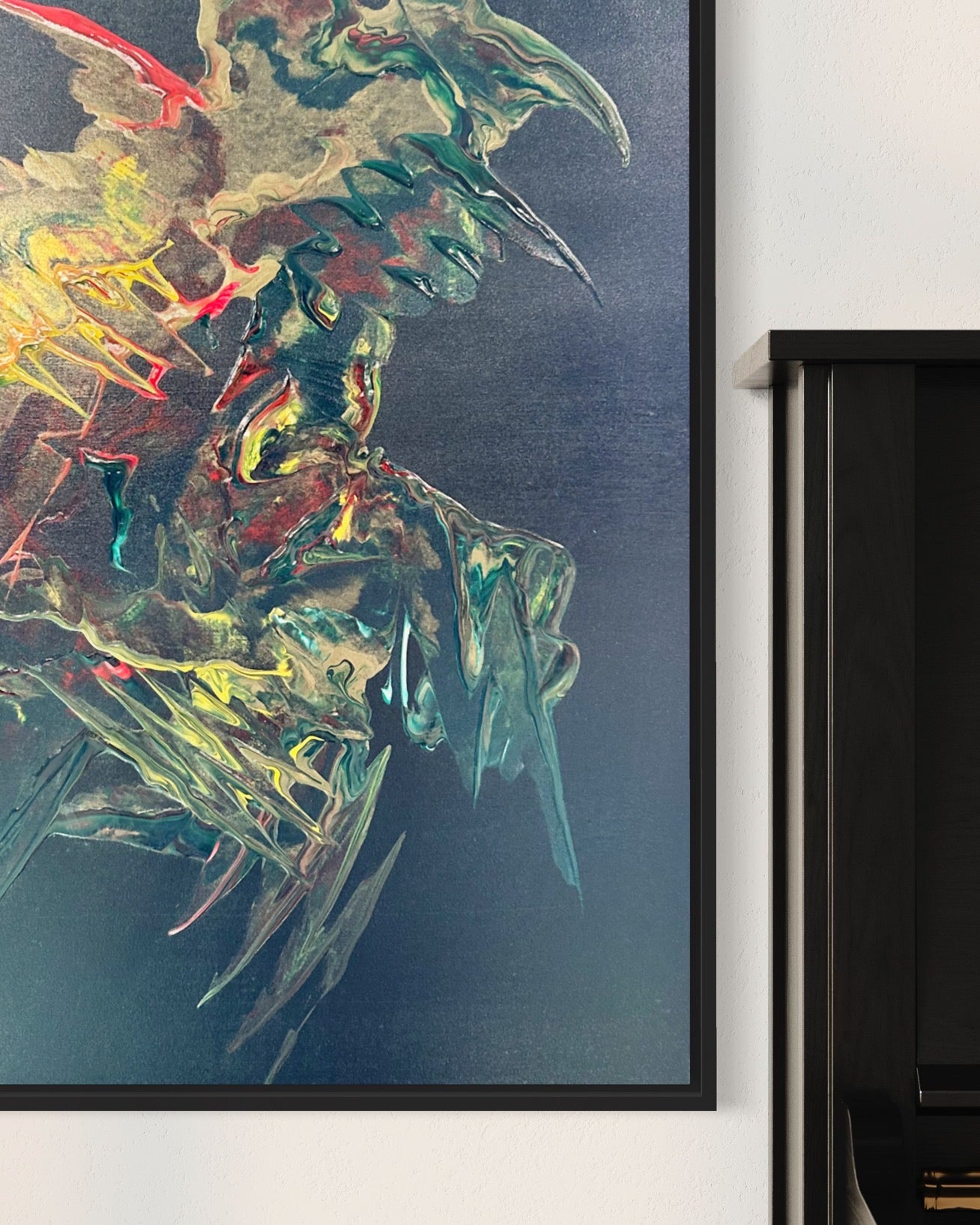Gelbe Farbtupfer sind über die Leinwand verstreut und stehen als Leuchtfeuer der Hoffnung und des Potenzials, die den Blick des Betrachters lenken und auf die innere Stärke hinweisen, die es noch zu entdecken gilt. Trotz der Vielfalt der Farben bewahrt die Komposition ein klares, harmonisches Gleichgewicht, das die ausgewogene Stärke eines wahren Kriegers widerspiegelt.